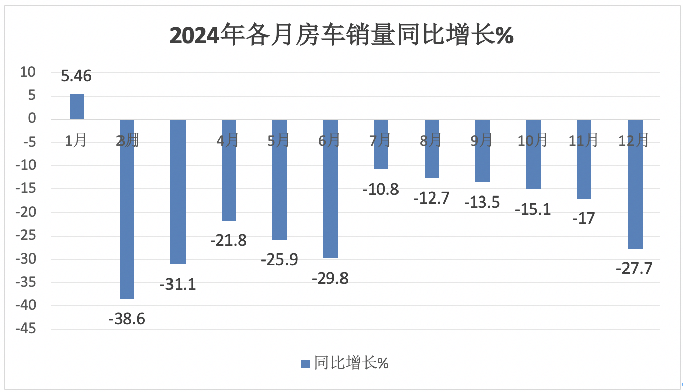 三:全年各月销量同比依次呈现“1增11连降”,“下降”成为2024年国内房车市场的“主旋律”