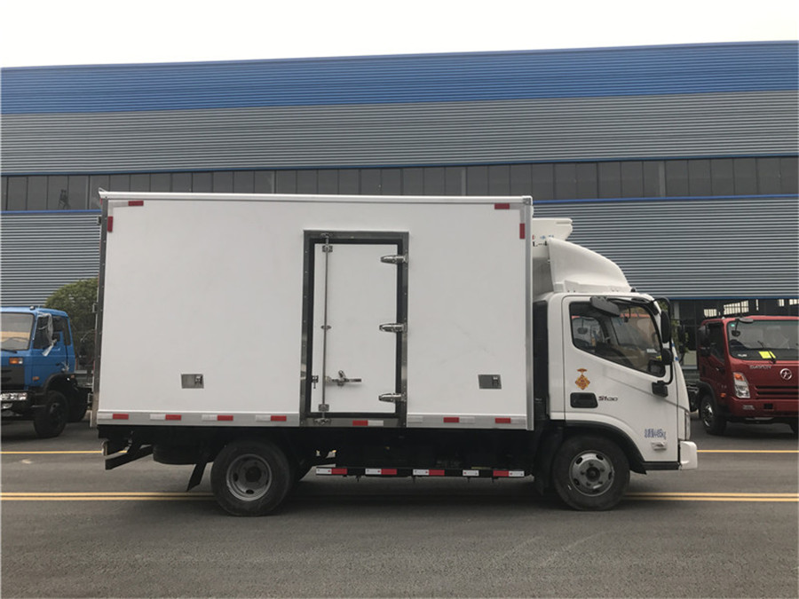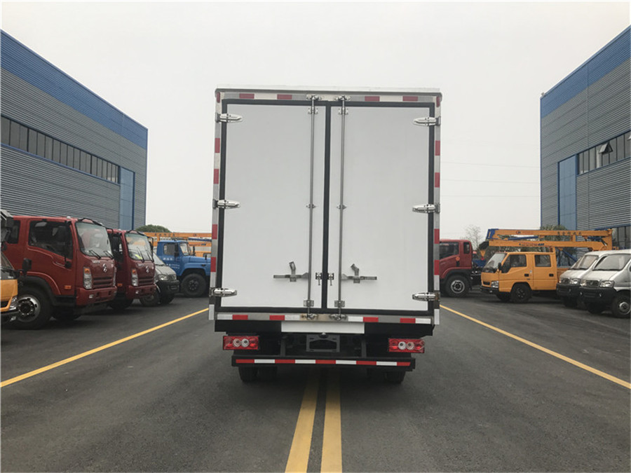 厢体采用内外玻璃钢板制作,中间高密度保温板,厢体厚度8cm,地板铝花纹板,铝合金型材包边,门框、锁件