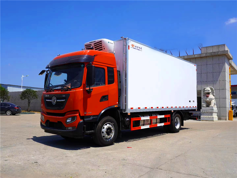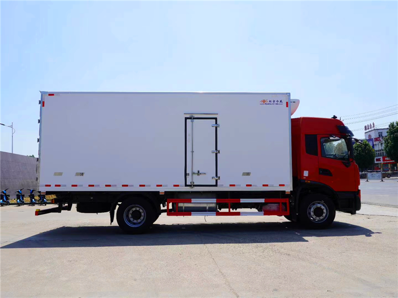 上装厢体配置:厢体采用内外玻璃钢、中间8CM厚聚氨酯保温板,厢体尾门双开,不锈钢锁件,厢体颜色白色,整车尺寸:9000*2600*3960(mm),箱体尺寸:6680*2440*2450(mm)。带侧门,配制冷机组。选装喷淋保湿系统、水箱、通风槽等。