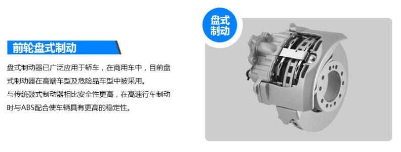 采用福田欧马可底盘,康明斯141马力国五柴油发动机,法斯特6档变速箱,定速巡航,排气制动,可设置满载和空载模式,7.00钢丝胎,前桥为盘式制动,带限速装置,排气管前置,带ABS,欧马可发动机80万无大修,2万公里保修一次,是竞品车型无法比对。