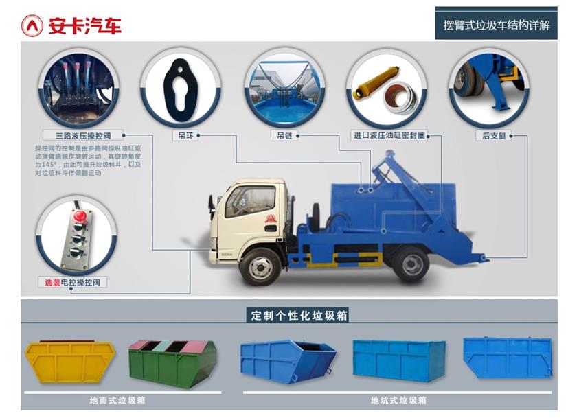 俊浩专汽销售的东风5方摆臂式垃圾车,100%保证原厂正品,车辆出厂前经严格质量检测,100%品质保证!安卡汽车会为您提供全套上户手续,包括整车合格证、底盘合格证、机动车上户发票等,全国范围内保证上户!为保证用户后期的正常用车,我司会安排专业技术工程师免费对客户用车人员进行专业的用车培训,培训内容包括车辆使用注意事项、车辆日常维护保养注意事项等,教会为止,免除您的后顾之忧!