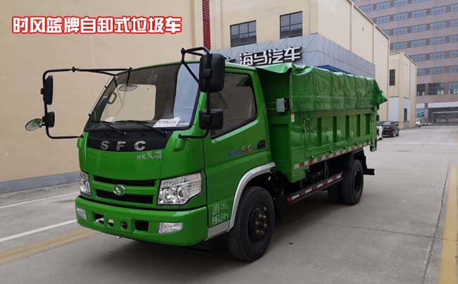 时风蓝牌自卸式垃圾车,采用工程自卸底盘,风顺一单排驾驶室,3280轴距,一汽锡柴130马力(带DPF),万里扬五挡带副变速箱,7.50R16朝阳钢丝轮胎,原厂空调,200双层大梁,七吨后桥,方向助力,断气刹,离合助力,整车尺寸(mm):长5850、宽2045、高2100。